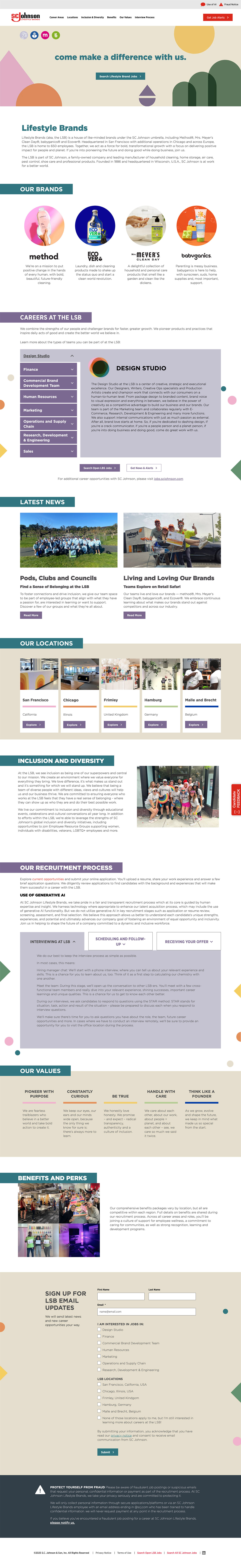 The career brand utilized SC Johnson's corporate color palette. I added a colorful line to the box, and kept the theme going creating over a dozen web pages, social media templates, email templates, and CRM webpage templates. Their Lifestyle brand needed to maintain the same feel as the career brand while maintaining its own distinct look and unique color palette. I created a web pages and CMS web page templates for the Lifestyle brand.